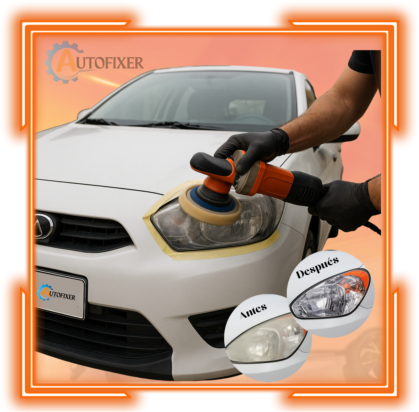 Pulido de focos, pulido completo de auto y grabado de patente. Mejora la estética y protección de tu vehículo sin salir de casa.